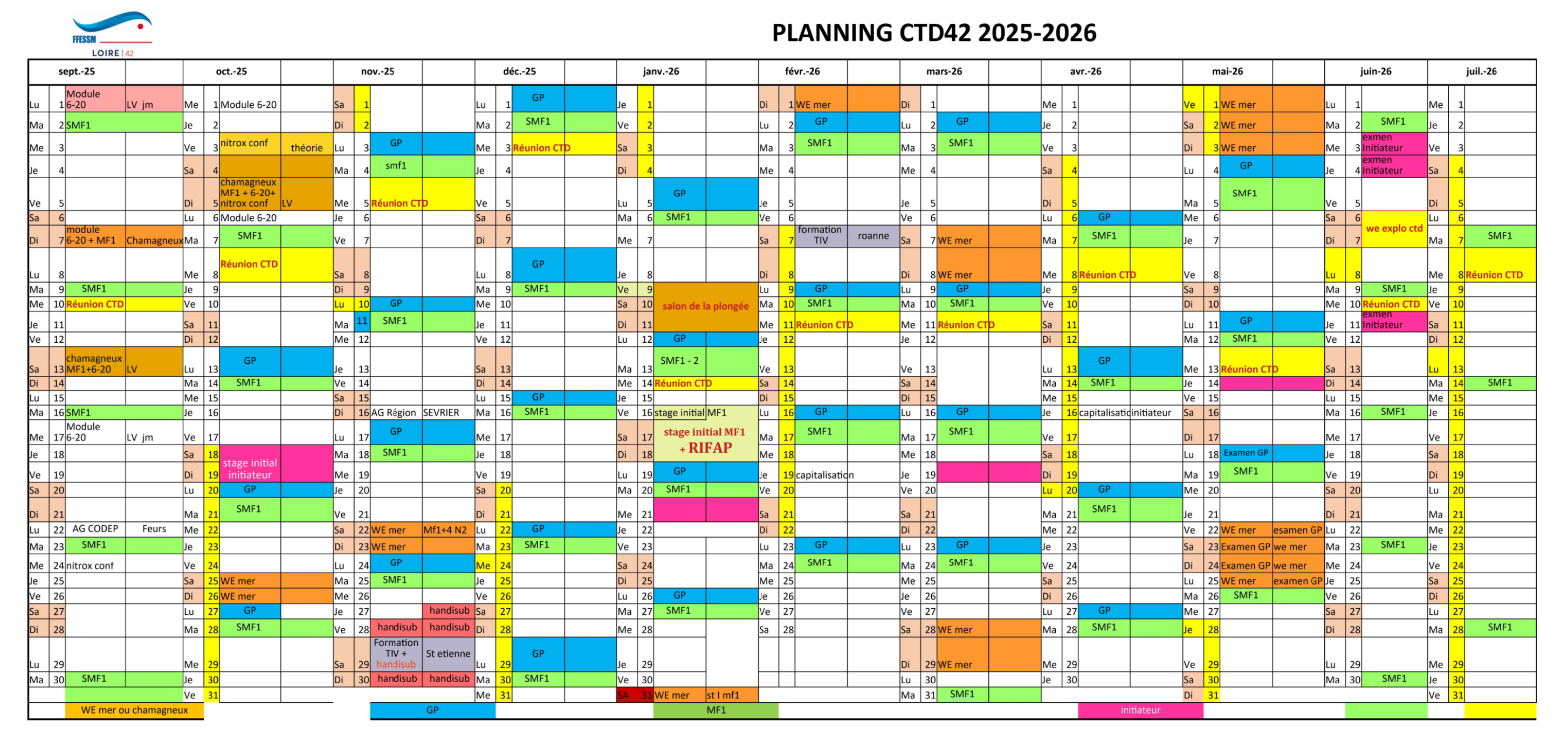 La formation de Moniteur Fédéral 1er degré (MF1) de la FFESSM offre aux plongeurs la possibilité d’enseigner la plongée sous-marine et de former des plongeurs de tous niveaux, du débutant au Niveau 3. Ce programme complet inclut des compétences pédagogiques, techniques et théoriques, ainsi que des épreuves d'encadrement en milieu naturel. Le MF1 est habilité à encadrer des plongeurs en formation jusqu'à 40 mètres de profondeur et à organiser des cours théoriques adaptés. La formation est rigoureuse, mettant l'accent sur la sécurité, l'enseignement et la gestion de palanquées. Pour y accéder, les candidats doivent posséder un Niveau 4 . En tant qu'ambassadeur de la plongée, le MF1 joue un rôle essentiel dans la transmission des valeurs et des pratiques de la FFESSM.club de plongée est de faire découvrir et de développer par les moyens qu’elle se donne, la plongée sous marine suivant les textes de la FFESSM.